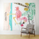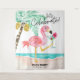 Ajoutez une ambiance joyeuse et tropicale à votre décoration de fête avec cette tapisserie tropicale Fête de la Plage aux Flamants Roses ! Elle présente un flamant rose sur la plage profitant d'un cocktail tropical à côté d'un palmier avec une légende "célébrons" dans un script manuscrit moderne et décontracté. Cela fait un fond photographique amusant pour une douche, une fête de fiançailles, une réception de mariage et une célébration d'anniversaire. Art de KL Stock.