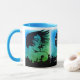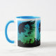 La tasse à café promotionnelle fait une grande déclaration pour vous-même, vos employés, à votre salon, pour vos clients et amis, pour aider à promouvoir votre entreprise. Assez pour posséder, avec un effet arc-en-ciel graphique et toutes vos informations d'affaires, comme adresse web, adresse email, numéro de téléphone, adresse municipale, nom du salon, votre nom et titre, plus de la place pour une déclaration personnelle. Conçu par HAMbyWhiteGlove aka HAMbWG. effet bleu et vert, graphisme noir - avec texte noir, montré sur tasse blanche avec intérieur bleu, poignée bleue.