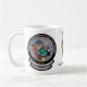 Plaine, blanc tasse de 15 onces avec la confrérie internationale du logo naval des ingénieurs de vol (IBNFE) d'un côté et 'DÉBUTS AVANT LE VOL APPROPRIÉS AVEC DE LA CAFÉINE" de l'autre côté, et le type de Fe au centre.