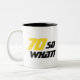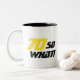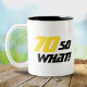 70 Ce Drôle Cite La Mug À Café À Deux Tons, 70e Anniversaire. Une excellente idée cadeau d'anniversaire pour un homme ou une femme qui fête son 70e anniversaire et qui a un sens de l'humour. Le texte dit 70 Alors quoi - vous pouvez changer l'âge. Le texte est en jaune et noir.
