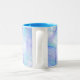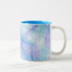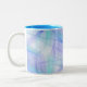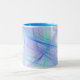 Cette tasse à deux tons présente un art fractal abstrait en bleu et vert.