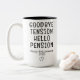 Levez un toast à la détente avec cette tasse de café de retraite heureuse "Goodbye Tension, Hello Pension". Dotée d'un design amusant et gai, cette tasse est parfaite pour les retraités prêts à embrasser leur liberté bien méritée. Que ce soit pour le café du matin, le thé de l’après-midi ou juste pour montrer leur nouveau statut, cette tasse fait un cadeau réfléchi et pratique. Fêtez leur prochain chapitre avec un peu d'humour et beaucoup de style!
