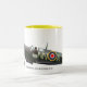Belle illustration d'un Spitfire classique sur cette tasse. Un avion de chasse classique qui a contribué à gagner la bataille d'Angleterre.