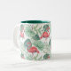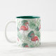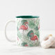 Tasse 2 Couleurs Aquarelle flamants roses et feuilles.