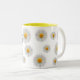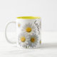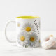 La "Mug à café à deux tons Bliss personnalisé blanc et jaune" présente un design charmant de marguerites blanches et jaunes qui apportent joie et fraîcheur à votre quotidien. Cette tasse personnalisable vous permet d'ajouter une touche personnelle, ce qui en fait un cadeau unique et réfléchi. Avec son coloris bicolore dynamique et sa construction céramique durable, il allie beauté et fonctionnalité pour une expérience de boisson délicieuse.
