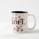 Le Buffalo Rouge Rustique Plaid Snowflakes White Birch Boeuf Mug à deux tons. L'arrière - plan de bouleau blanc me rappelle la cour de mes grands-pères à Noël. Les flocons de neige en plaid de buffle rouge avec "Let it Snow" ont l'air fantastique ensemble, comme si vous êtes assis dans votre grand-parents derrière la cour.