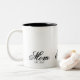 Mom Established New Mom Gift Two-Tone Coffee Mug. Mom Established New Mom Mug - Minimal Elegant Black Script Mom Typography - Add your custom "Est" established year date when your first child was born. Add additional years for each child.