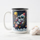 Un vaisseau-fusée de style rétro s'enfonce dans un cosmos coloré et étoilé. Il est conçu avec un grand regard et un visage amical, ajoutant une touche de fantaisie à la scène. Le sentier d'échappement enflammé de la fusée et les planètes vibrantes de l'arrière - plan créent un sentiment de mouvement dynamique et d'aventure.