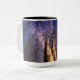 Ce design présente une belle image de deux grands arbres qui s'élèvent dans le ciel, entourés d'autres arbres dans une forêt. Le spectacle est donné la nuit, quand tout est particulièrement magique et enchanteur. Il y a un troupeau d'oiseaux en vol au-dessus. Le ciel est composé d'un beau mélange de violet et de bleu, parsemé d'étoiles blanches et lumineuses.