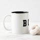 Cette tasse de café en céramique est montrée avec un texte de BOSS. Customisez cet objet ou achetez tel quel.