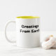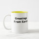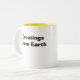 Cutes Saucer Buddies Mug avec les mots "Salut de la Terre" imprimés à l'envers.