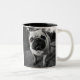 Photographie noire et blanche d'un carlin très beau avec de grands yeux bruns brillants. Grand cadeau pour vous-même ou l'amant de carlin dans votre vie.