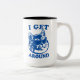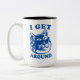 Cute tasse à café pour amoureux de les chats cool. Graphique bleu d'un chat grasse à la fusillade avec lunettes de soleil terminateur et la phrase épique : I Get Around.