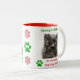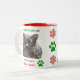 Ce Noël, donne à papa une tasse de café de son ami furieux préféré — son chat bien-aimé ! Décoré d'empreintes de pattes verts et de flocons de neige rouges. Personnalisez avec votre propre photo d'animal de compagnie. Le texte est entièrement personnalisable.
