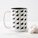 Black Stripes Coeur Deux Tons De Café Mug. Elégant motif noir et blanc avec des rayures verticales et diagonales avec de mignons coeurs noirs.