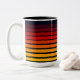 Design à rayures multicolores inspiré d'un coucher de soleil. Design minimaliste dans les tons bleu foncé, rose, rouge, orange et jaune.