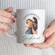 Éclairez votre matin avec ce thé ou une tasse à café Good Morning Sunshine. Personnalisez-le avec votre propre photo pour ajouter une explosion de bonheur à chaque gorgée. La typographie de script et le graphisme d'arc confèrent à ce design un côté moderne. Parfait pour les couples qui célèbrent un mariage, un anniversaire, un anniversaire ou la Saint-Valentin, cette tasse personnalisée transforme leur brassage quotidien en un doux rappel de l’amour que vous partagez.