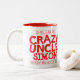 Tasse 2 Couleurs Crazy Oncle avertissement personnalisé nom muette