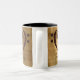 Le coeur de la clef double basse en cuivre est présenté sur un arrière - plan en feuille vintage dorée baisée au soleil. Élégante tasse à café de psalterie fait une idée cadeau parfaite pour votre joueur de psalterie préféré, ou fan de cet instrument à cordes unique.