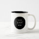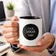 Custom two-sided branded coffee mug features your professional business logo design that can be personalized. Simply add your company logo to the black round placeholder image space.