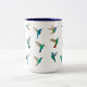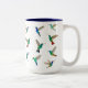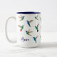 Unique colorful mug for hummingbird lovers featuring several species of hummingbirds, such as Fiery-throated Hummingbirds, Blue-chinned Sapphire, Golden-tailed Sapphire, Mexican Violetear and Mango Hummingbirds. Just add your name -- you can change the font style and font size. Images taken from original watercolor paintings by Christiane Dobbins.