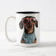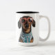 Start your day with a smile using this Cute Little Dachshund With Red Glasses Two-Tone Coffee Mug. Featuring an adorable dachshund wearing bright red glasses, this cheerful design adds personality, humor, and charm to your coffee or tea routine. The two-tone style enhances the playful artwork, making it a standout mug for everyday use.