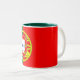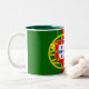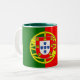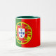 La moitié de la tasse est composée de la partie rouge du drapeau, l'autre de la partie verte, avec les armoiries portugaises en détail centrées sur le design.