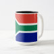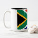 Ce dessin présente le drapeau national de l'Afrique du Sud (officiellement la République d'Afrique du Sud), qui est le pays le plus au sud de l'Afrique. Environ 80 % des Sud-Africains sont d'ascendance africaine noire, tandis que la population restante est constituée de grandes communautés d'ascendance européenne, asiatique et multiraciale. L'Afrique du Sud compte trois capitales : la capitale exécutive Pretoria, la capitale judiciaire Bloemfontein et la ville législative du Cap. La ville la plus peuplée est Johannesburg ; d'autres grandes villes sont Durban, East London, Pietermaritzburg, Port Elizabeth, Soshanguve et Vereeniging. L'Afrique du Sud est souvent appelée la "nation arc-en-ciel" pour décrire la diversité multiculturelle du pays, en particulier dans le sillage de l'apartheid.