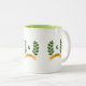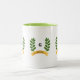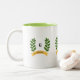 Feuilles verts et ruban doré sur Mug blanc. Le texte peut être personnalisé.