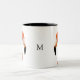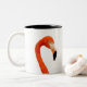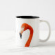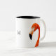 Tête de flamant rose corail vibrant et monogramme sur fond blanc.