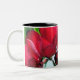 La photo originale de MaeFlowers sur cette Mug aux couleurs vives montre des fleurs rouges et des feuilles verts contre un ciel bleu clair.