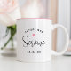 Célébrez la future mariée avec cette charmante tasse Future Mme avec un nom de famille personnalisé en écriture calligraphique fluide, une date de mariage et un doux accent de cœur rose sur fond blanc avec un intérieur rose coordonné. Le design élégant et minimaliste est parfait pour la saison des fiançailles. Le nom de famille et la date sont entièrement modifiables. Un cadeau de fiançailles idéal, un souvenir de douche de mariée ou un traitement pour l'enterrement de vie de jeune fille de la future Mme.