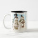Un couple de bonhomme de neige avec chapeaux noirs, sourires, écharpes d'hiver et garçons en pain d'épice est présenté sur les T-shirts Gingerbread Snowman, cartes de voeux, tasses, mousepads, boutons et plus !
