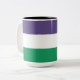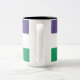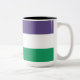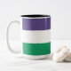 Ce dessin est orné du drapeau du mouvement des suffragettes, qui au 20ème siècle s'est battu pour le droit de vote aux élections publiques, connu sous le nom de suffrage des femmes. Le terme "suffragette" a été inventé pour la première fois pour minimiser le mouvement, mais les femmes impliquées ont rapidement accepté et adopté le nouveau nom comme signe de leur refus d'accepter des élections réservées aux hommes. Le mouvement continue d'inspirer les campagnes féministes et d'autres campagnes politiques aujourd'hui.