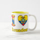 Ik houd van Ecuador mok Tekst : I heart Ecuador Het hart is de Ecuadoranse vlag. Kleuren : geel, blauw en rood.