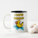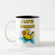 Un canard jaune qui s'agite sur l'eau bleue avec le texte I Love Ducks sur les T-shirts, sweat - shirts à capuche, tasses, sacs, cartes, magnets, serpents, mousepads, autocollants, coussins, porte - clés, et beaucoup d'autres vêtements et cadeaux de canard.