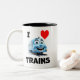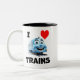 J'adore les trains. J'ai le coeur en train. Avec des personnages noirs et le coeur est rouge. Si vous êtes fou de trains !