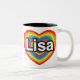 Tasse 2 Couleurs J'aime Lisa. Je t'aime Lisa. Coeur