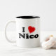 J'aime Nico ! Votre nom est-il Nico ? Avez-vous une épouse, une amie, un membre de la famille féminin ou un ami féminin que vous savez des amours vous ? Ou avez-vous un mari, un ami, un membre de la famille masculin ou un mâle Nico appelé par ami que vous aimez profondément ? Si oui, ce "que j'aime" la tasse est exactement le cadeau que vous recherchez ! Les caractéristiques de conception la lettre "je" dans le lettrage noir avec un coeur rouge sur le dessus et "Nico" dans le lettrage noir sur le fond.