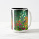 Mug à café avec peinture à l’huile de Gustav Klimt Jardin aux fleurs (1906). Un beau jardin de fleurs violettes, rouges, blanches, bleues et oranges. Un grand cadeau pour les amateurs d'art Art Nouveau et autrichien.
