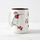 Mignonne colibri coutume Mug de Noël avec un colibri à gorge de rubis portant un chapeau de Père Noël.