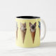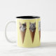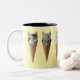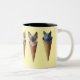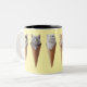 Six races de chats qui sortent des cônes de crème glacée tournent autour d'une tasse de café.