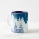 Scène Forêt D'Hiver Mug À Café À Deux Tons. Image d'arbres recouverts de neige près d'une rivière la nuit.