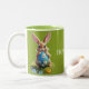 Tasse 2 Couleurs Le lapin de Pâques doux avec de la pâtisserie.