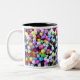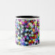 Tasse avec l'intérieur noir avec l'image des matrices colorées assorties.