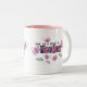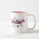 Une tasse à café de type MeeMaw avec de jolis papillons en pois rose et violet avec une police de caractères mignonne. Visitez notre boutique pour voir ce design sous différents noms de grand-mère.