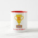 Meilleure Mug de café papa 1 au monde présente un trophée jaune avec l'inscription rouge "#1 Papa" affichée. La base du trophée indique "Le meilleur du monde". Sous le trophée est affiché votre nom. La tasse elle-même est blanche avec du rouge à l'intérieur. Commandez les vôtres dès aujourd'hui ! Oeuvre créée par : AMBillustrations http://www.etsy.com/shop/AMBillustrations/