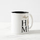 Une tasse à café élégante et personnalisée présente un design typographique avec du texte "Home" et une carte de l'état du Michigan. Cliquez sur l'option Personnaliser pour déplacer le marqueur de ville de coeur noir des deux côtés de la tasse. Vous pouvez le positionner directement sur la ville où vous habitez ou votre ville natale. Couleurs neutres noir, beige et blanc.