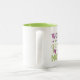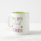 La plus grande tasse à café mère du monde. Bel mélange de tons vert et rose/violet. Cette position de conception est située à l'extérieur, pour les poignées de droite. La version gauche est disponible dans la collection Left Handed Mug à Heva Weva.