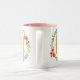 mug floral monogrammed avec une couronne de fleurs et une mignonne écriture manuscrite initiale.